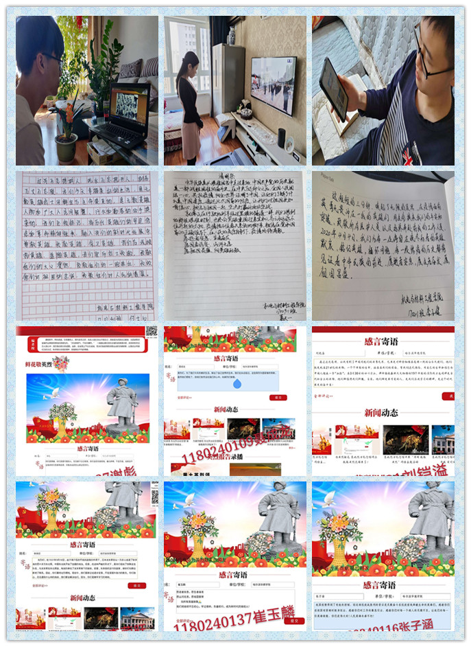 活动中,公司全体员工在电视机前向抗击新冠肺炎疫情斗争牺牲烈士和逝世同胞默哀三分钟。并在“清明•致敬英烈”线上平台通过网络献花、抒写感言寄语等方式,号召所有人能够在清明节期间文明祭扫、表达哀思。随后,各团支部成员集中观看了“英烈报告录播”、“英烈事迹展播”、“品读红色故事”等模块内容。同学们表示,通过学习英烈们的事迹让我们更加珍惜今天的幸福生活,也对抗战疫情的最终胜利充满了信心,也将会用实际行动为中华民族的伟大复兴贡献力量。最后,辅导员老师进行了总结讲话,充分肯定了各班级清明活动开展情况,并嘱咐同学们在缅怀先烈、寄托哀思的过程中,要不忘初心,牢记使命,做一个有责任有担当的新时代老员工,展现华德学子风采。