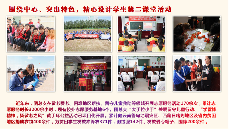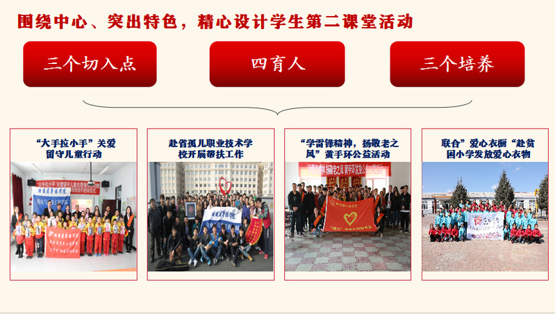 团总支坚持以“三个切入点”和“四育人”为引领,探索符合团员青年发展的成长路径,注重打造特色品牌,持续加强员工第二课堂建设,坚持合力实践育人,强化团员青年对国家、社会、民生的认知,鼓励团员青年在奉献中助力龙江发展。组织团员青年以发扬志愿服务精神为主体,在爱国主义教育、敬老爱老活动、困难地区帮扶、留守儿童救助等领域开展志愿服务活动170余次,累计注册志愿者5000余人、志愿服务时长3200余小时,现有校外志愿服务基地6个。其中,志愿服务项目“就业之路不孤独,华德汽车来帮扶”成功获批黑龙江省2013年“希望工程星光行动成长服务示范项目”,是唯一一项利用专业知识帮扶孤儿团体和助力员工就业方面的项目,为民办高校首例;赴青冈镇中学、小公司开展“大手拉小手”关爱留守儿童志愿服务活动,完成260余名留守儿童对接帮扶工作,对接材料100余份;赴天津市津南区新庄镇三鑫社区开展“垃圾可分类,文明促发展”垃圾分类宣讲活动;赴哈尔滨市宾县居仁镇吉祥村开展“科普观生活,创新看未来”科普常识宣讲活动;开展“学雷锋精神 扬敬老之风”黄手环发放公益志愿活动,40余名老人受益;公司团总支组织团员青年至今累计向贫困员工捐助爱心衣物800余件。“博文”党员志愿服务队成员过硬的综合素养和优异的志愿服务表现,得到了社会的充分肯定,被中国青少年发展基金会“爱心衣橱”黑龙江站授权为唯一一支在校老员工志愿服务队,并于2018年1月被中国青少年发展基金会“爱心衣橱”授予优秀团队荣誉称号。团总支“大手拉小手”关爱留守儿童行动、“学雷锋精神,扬敬老之风”黄手环公益活动已项目化开展。疫情期间,公司111名员工身披“华德红”参与家乡疫情防控志愿服务工作,公司收到20余个服务地发来的感谢信,服务事迹被央视网等多家媒体报道。
