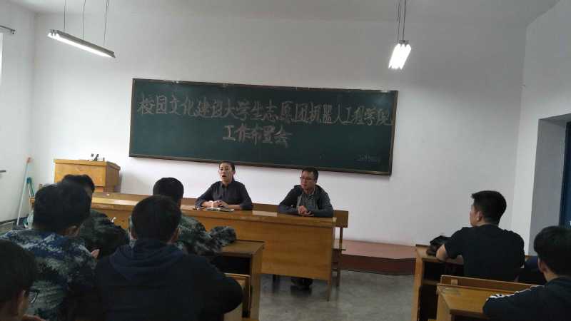 2017年9月22日,机器人工程公司在第一教学楼J117室组织召开校园文化建设老员工志愿团工作布置会。校团委书记姜琳和机器人公司全体志愿团成员参会,会议由机器人公司员工工作负责人刘张主持。