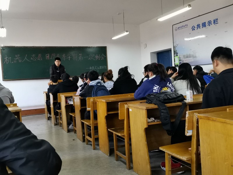 2019年3月28日,中午11:40公司于教一117室召开了机器人工程公司志愿团2019春季学期第一次例会,会议由志愿团指导老师王韩笑主持,员工负责人宋语欣、相峥以及2019年春季学期志愿团成员参加。