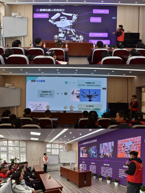 志愿者们是良师也是益友,他们向小朋友们讲解现代科技知识,将所知所学倾囊相授,通过讲解并实践操作跳舞机器人,讲述无人机运行原理及发展趋势,志愿者们的付出让现场小员工们切实认识和感受知识带来的无限乐趣,体会其中的独特魅力和力量,从此在他们心中埋下一颗科技强国的种子。