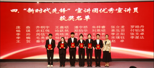 经过前期评选,会上授予齐桐宇等34名员工“新时代先锋”宣讲团优秀宣讲员荣誉称号,董事长助理魏可霏为“新时代先锋”宣讲团优秀宣讲员代表颁奖。