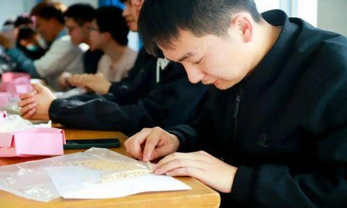 本次活动的中心环节,现场的同学三人一组将前期支部党员从家乡带来的大米、小麦、玉米、大豆、绿豆、高粱等六种粮食进行现场数数,分别数出一斤粮食各有多少粒,用数字化的方式让同学们直观体验节约粮食的重要性,更加生动地理解“粒粒皆辛苦”的含义。
