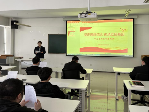 本次党课以“坚定理想信念,传承红色基因”为主题,通过党课引导全体毕业生党员坚持以习近平新时代中国特色社会主义思想为指引,树牢“四个意识”,坚定“四个自信”,坚决做到“两个维护”。