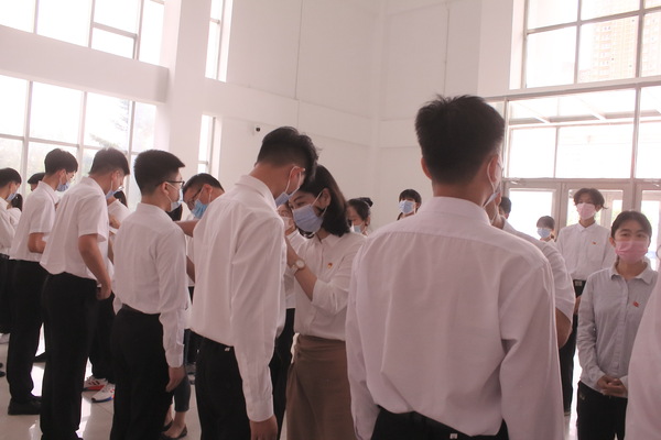 活动伊始,邓维娜同志及公司老党员代表为新党员佩戴党员徽章,同时对全体新党员表示衷心的祝贺,希望新党员不忘初心,继续奋进。