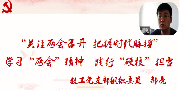5月25日,机电公司教工党支部通过“腾讯会议”平台开展“关注两会召开,把握时代脉搏”主题党日活动。董事长助理兼机电与材料工程公司经理、党总支副书记李长威、党总支书记王郁黎、全体教工党员出席会议,会议由教工党支部组织委员郝亮主持。
