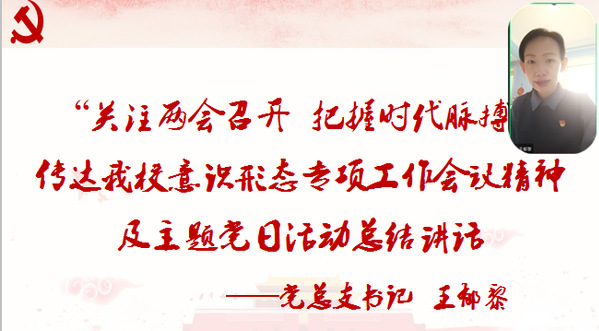 最后,王郁黎书记作总结讲话。首先,她充分肯定了本次主题党日活动的重要意义。她强调,在这特殊时期,全体党员教师应紧紧团结在以习近平同志为核心的党中央周围,立足本职岗位,在公司产品工作中,充分发挥党员先锋模范作用。随后,她向与会党员传达了5月23日公司意识形态专项工作会议精神,并详细介绍了当前公司、公司意识形态工作整体情况及下一步工作部署,并要求全体教师党员坚决贯彻执行公司“强化责任担当,加强思想引领,营造良好舆论氛围”的意识形态工作要求,用实际行动展现华德教师党员风采,用“硬核”的工作态度为母校28岁生日献礼。