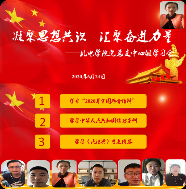 为进一步强化公司党总支理论学习中心组学习,提高党员领导干部政治素养和理论素养,提升决策水平,增强工作本领。6月24日,机电公司党总支通过“腾讯会议”平台开展“凝聚思想共识,汇聚奋进力量”中心组理论学习会议。全体中心组成员出席,会议由公司党总支书记王郁黎主讲。