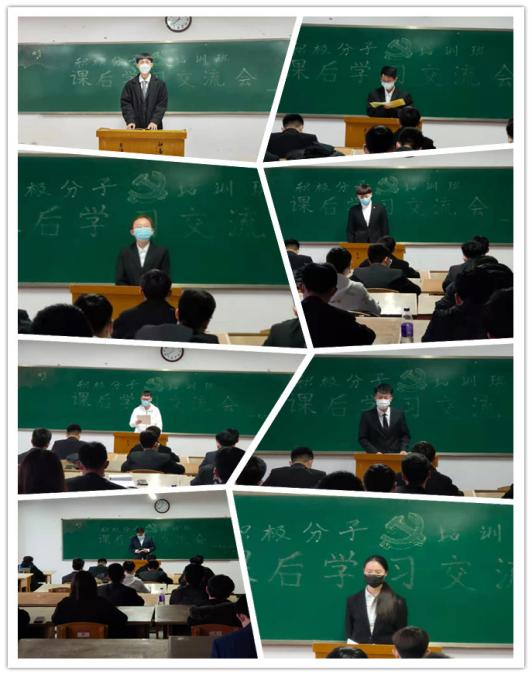 会议开始,孙昊简要介绍了党的发展史,并强调在建党百年之际,作为新时代老员工更应该传承红色基因,延续精神血脉,认真总结践行每一节党课的思想与心得。随后,1802114班李太铭、1902401班何柏华、2002401班周保旭等多名同学在发言中讲到,作为一名入党积极分子必须要端正自己的入党动机,传承党的精神,坚决自律,了解自身使命,践行自身价值。不忘初心、牢记使命,通过自我革命推动社会革命,在生活与学习中随时更新思想,弥补自身的不足,成为一名合格的入党积极分子。