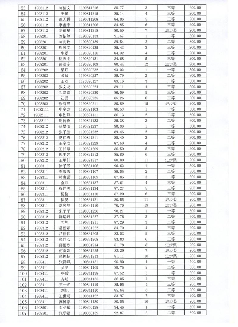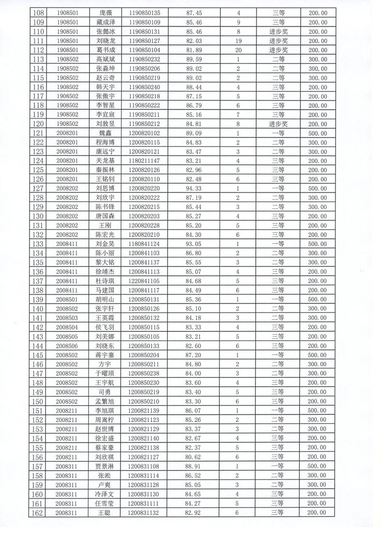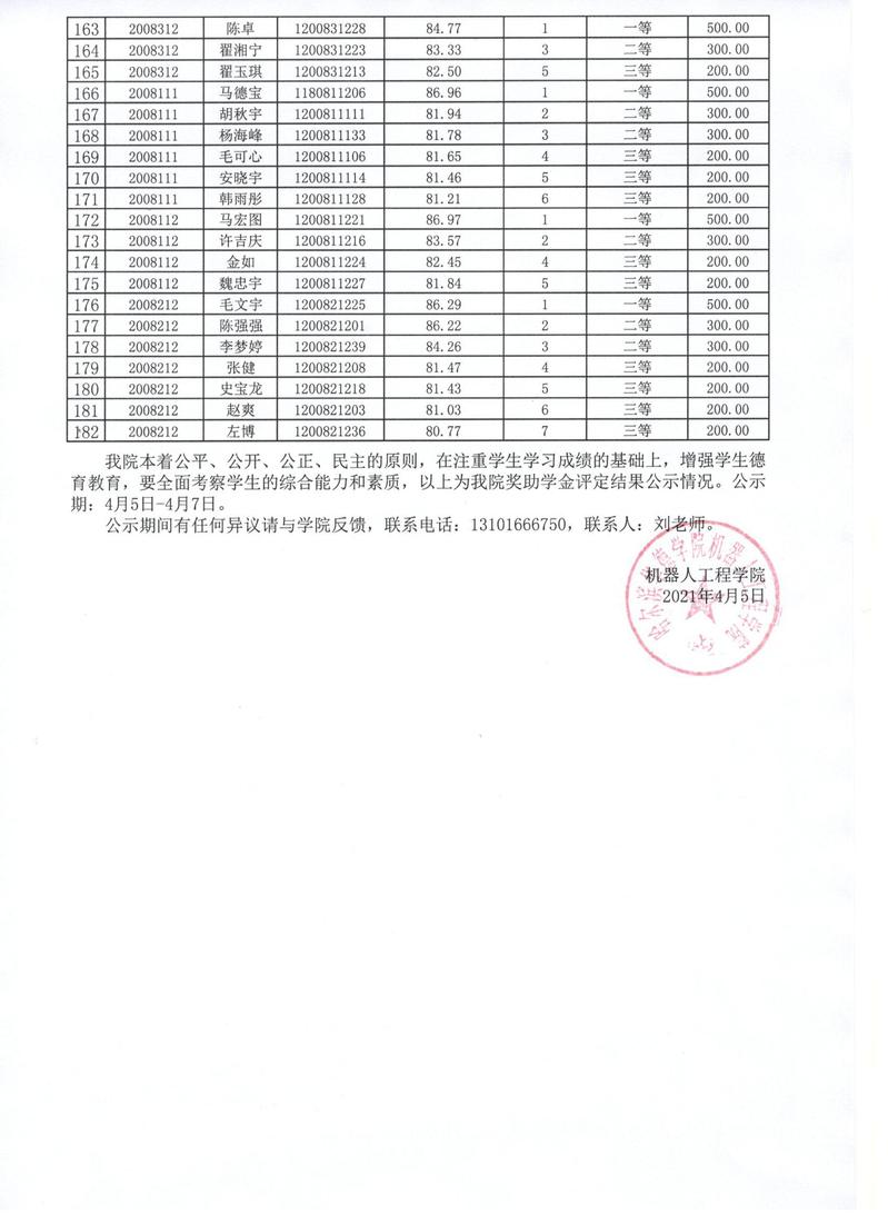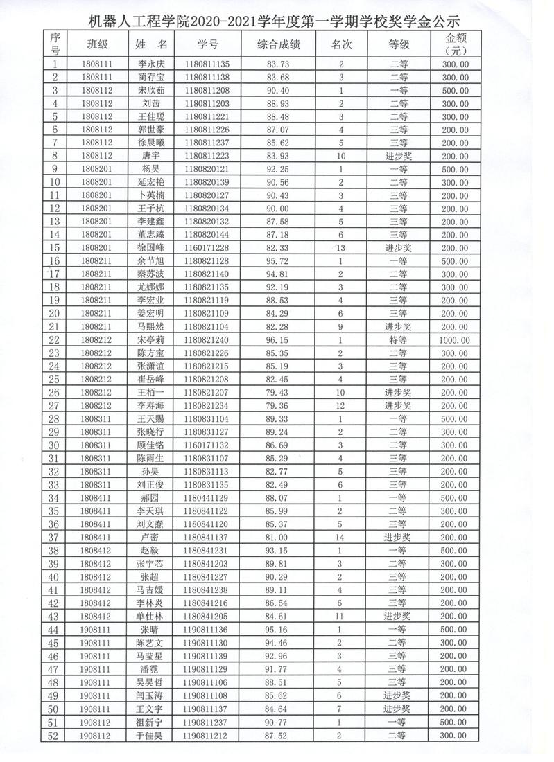 机器人工程公司2020-2021学年度第一学期公司奖学金公示