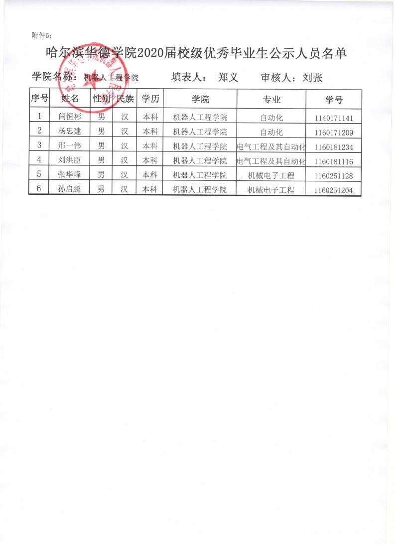 2020届校级优秀毕业生公示人员名单
