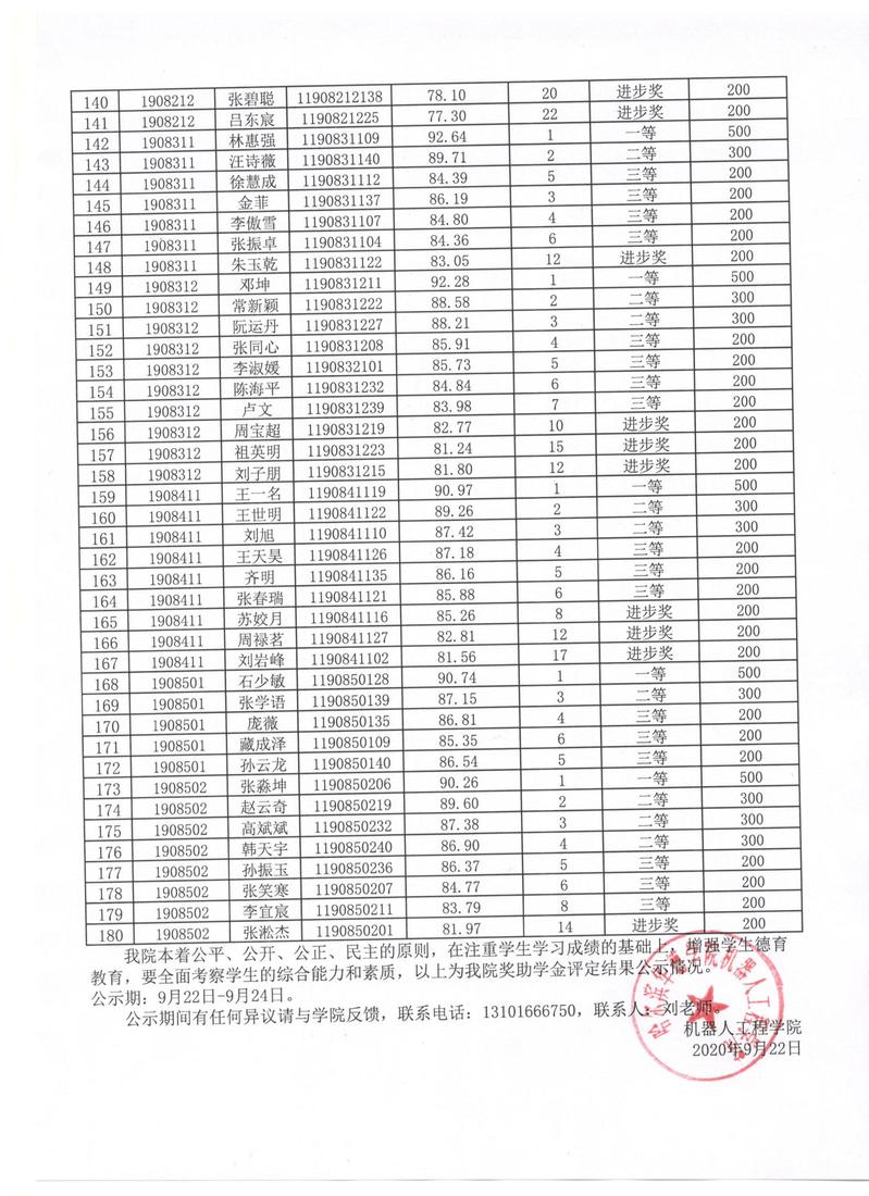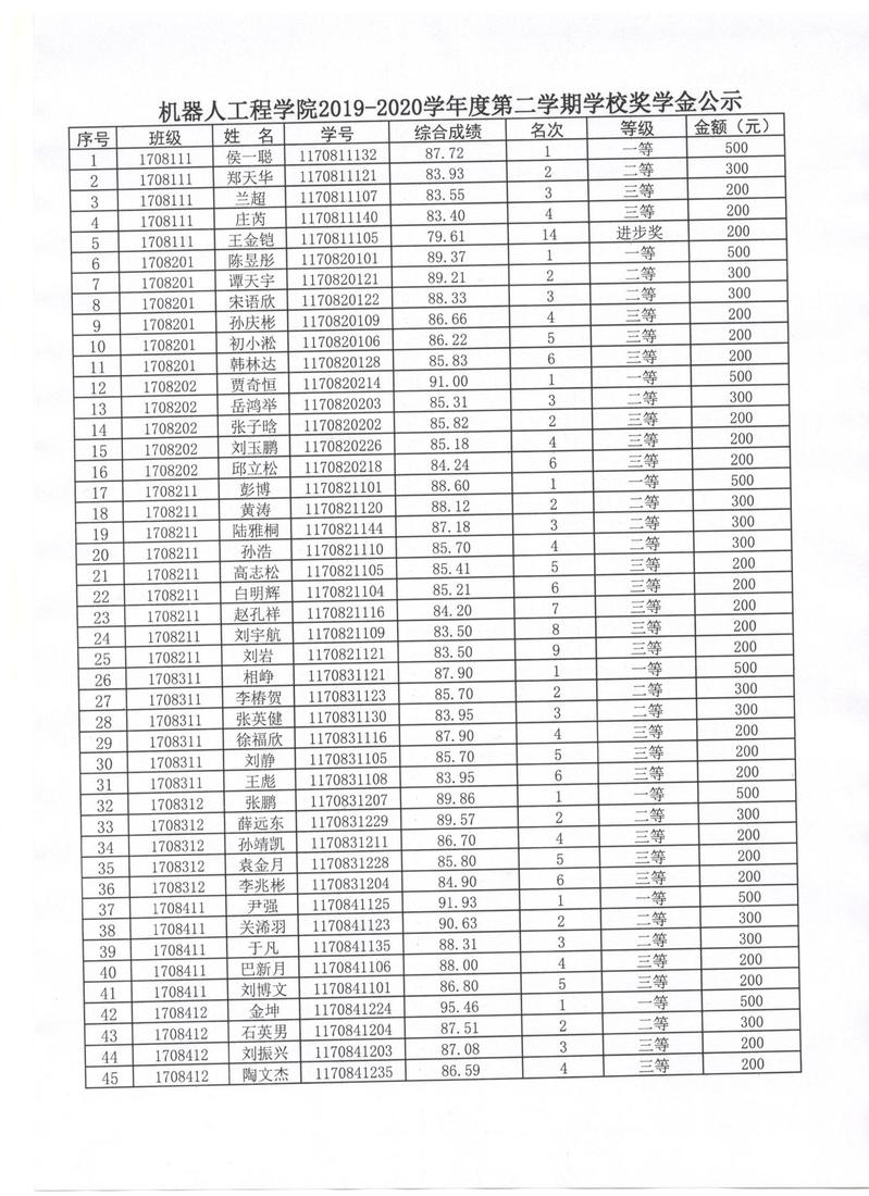 机器人工程公司2019-2020学年度第二学期公司奖助学金公示