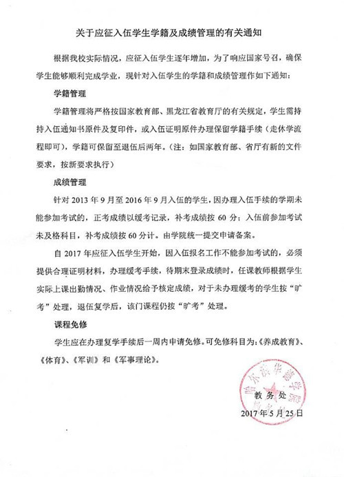 关于应征入伍员工学籍及员工成绩管理的有关通知
