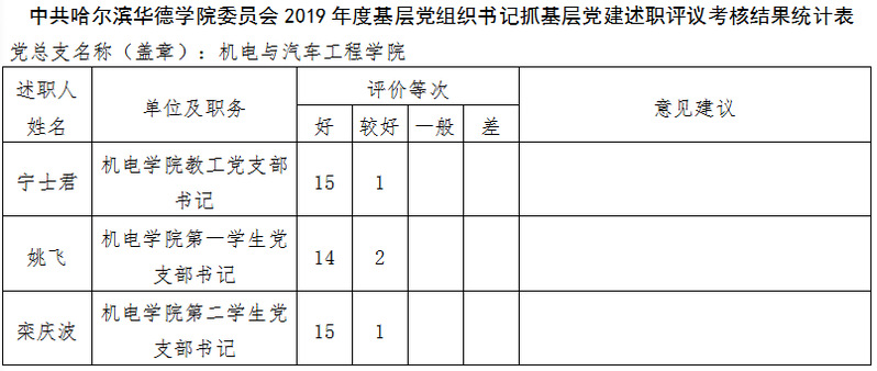 2019年度基层党组织书记抓基层党建述职评议考核结果公示