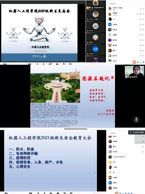 为激发新生的学习热情,坚定学好专业理论知识的信心和决心,10月5日,通过“钉钉直播”召开了机器人工程公司2021级新生见面会。