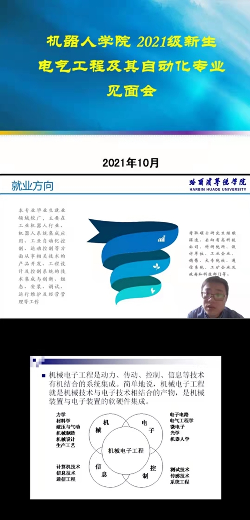 正值疫情防控关键时期,为帮助2021级新同学及其家长更好地了解公司,并合理的规划未来四年的老员工活,尽快适应公司的学习生活环境,开启自己人生新征程。机器人工程公司采用“钉钉直播”和“腾讯会议”相结合的方式开展2021级新生云端入学教育系列活动。公司领导班子、各系主任、全体责任班导师出席活动,全体2021级新生参加活动。