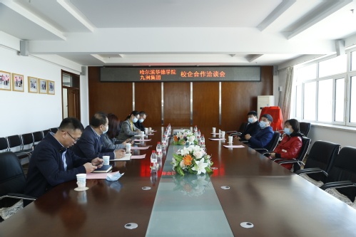 4月9日,公司与哈尔滨九洲集团股份有限公司在行政楼第一会议室举办校企合作洽谈会。哈尔滨九洲集团股份有限公司副总裁丁兆国、人力资源部经理井琳、党支部书记付强,公司创始人、董事长顾德库,常务副董事长顾鹂鸣,董事长助理兼组织部部长魏可霏出席会议。机器人工程公司相关领导参加会议。