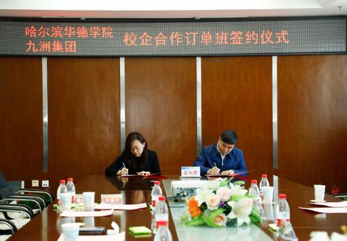 会上,校企双方分别就公司和企业发展情况进行了深入交流。公司与哈尔滨九洲集团股份有限公司自2017年开始建立校企合作关系,并在员工就业、“双师型”教师队伍建设以及校外实践教育基地建设等方面开展合作。本次双方积极在原有合作基础上创新培养模式,结合企业专业人才培养需求,以“订单班”的形式搭建员工就业实习平台,保障员工所学与企业所需精准接轨。