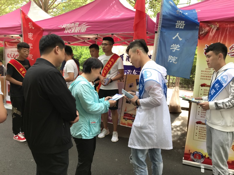 2019年6月是全国第十八个“安全生产月”,为切实提高广大师生的安全意识和自我防护能力,有效预防安全事故,按照公司宣传内容分工,公司负责交通安全及宗教信仰方面安全教育,为进一步提高公司师生的交通安全意识和自我防范意识,6月14日至17日,公司于步行街进行摆摊宣传。