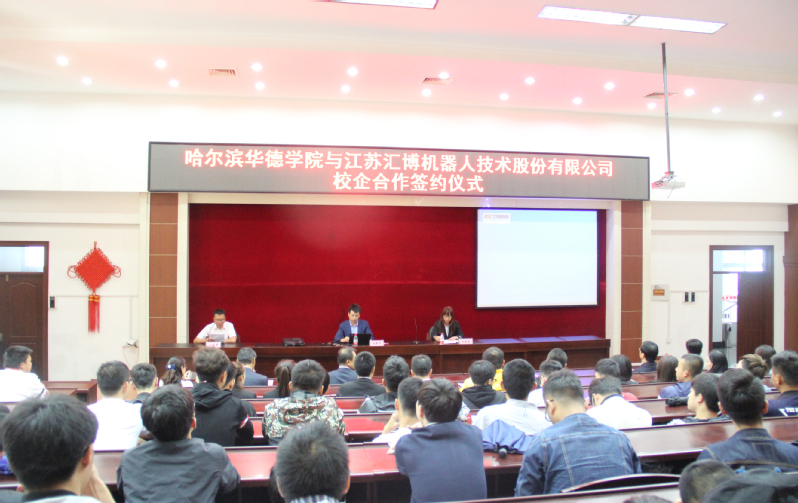 6月9日,公司与江苏汇博机器人技术股份有限公司校企合作签约仪式在第一教学楼报告厅隆重举行。
