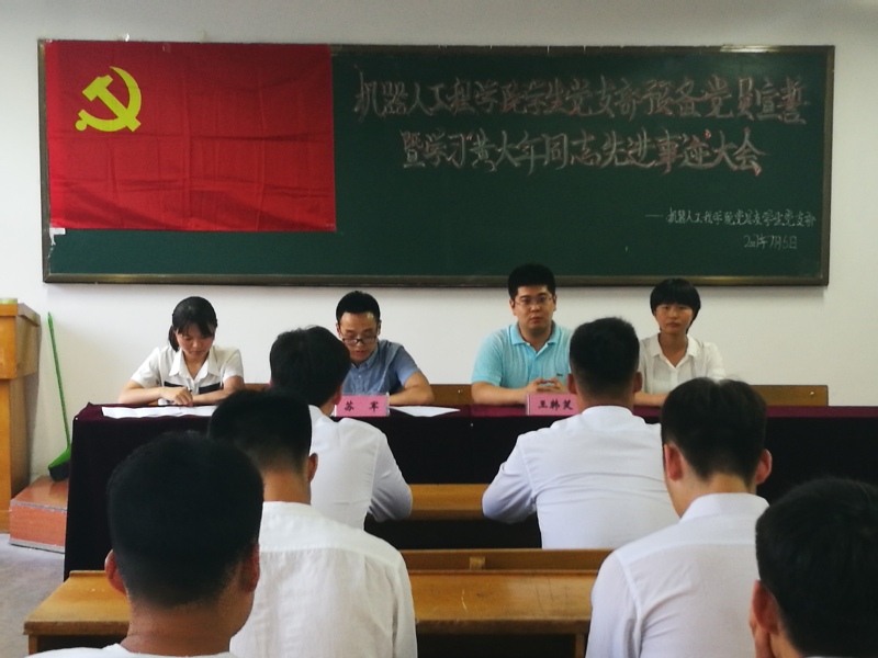 为了加强公司党员自身的思想道德建设、提高党员自身素质。7月6日下午,公司在教一117教室召开机器人工程公司员工党支部预备党员宣誓暨学习“黄大年同志先进事迹”大会。莅临本次大会的有王韩笑老师、苏军老师、程梦圆同学、李虹桥同学以及全体员工党员。本次会议由苏军老师主持。