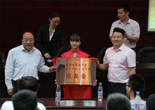 大会结束后,校院领导与员工来到思源广场参加了机电公司员工、2017届毕业生敬献校训石的揭幕仪式。仪式上2017届毕业生代表马晓鑫上台发言,现就业于浙江吉利控股集团的2016届员工王会、2017届员工马晓鑫共同为母校敬献锦旗。董事长与员工代表郭洪超、马晓鑫等人共同为感恩石揭幕并合影留念。