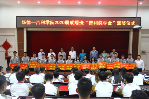 5月24日,公司“华德-吉利”公司“成蝶班”吉利奖学金颁奖仪式在报告厅举行。吉利控股集团企业大学副经理刘瑜、人才经营中心技能管理部北方大区招聘经理马旭、公司副董事长关晓冬、董事长助理兼“华德-吉利”公司经理李长威及公司全体院领导出席活动。2020届“成蝶班”全体成员参加活动。