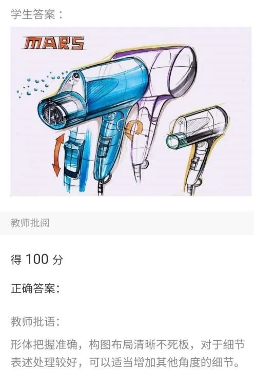 同时,依托学习通平台对员工作业进行在线点评。通过教学演示及员工动手实践教、学结合,即便是没有美术功底的同学也能够熟练掌握产品设计手绘表现的技法,充分体现了实验实训课程的教学效果。
