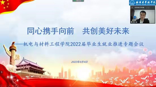 为贯彻落实教育部、黑龙江省2022届毕业生就业创业工作相关会议和文件精神,认真分析和研判就业形势,扎实做好毕业生就业工作,4月4日,机电与材料工程公司在云端召开“同心携手向前·共创美好未来”2022届毕业生就业推进会。公司副董事长兼机电与材料工程公司经理李长威、公司党总支书记王郁黎、副经理吴犇、全体就业包保教师、毕业班辅导员以及全体2022届毕业生参加会议,会议特邀公司人才招聘处副主任张有承主讲。会议由毕业班辅导员史澈主持。