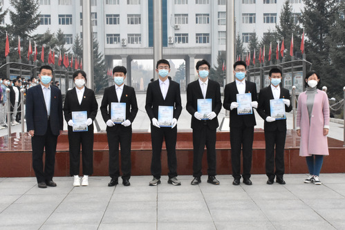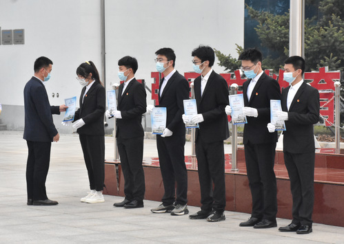 担任本次升旗手的是机电与材料工程公司优秀员工代表1802111班陈永恒、1802402班冉令元、1902401班席煜晗、1902112班陈财、1902115班董昭宇、1902402班宋福江。