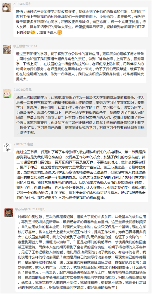 活动后,全体学员用自己的方式分享了本次团校学习的心得体会,朴实的话语中展现了新时代学子的风采。