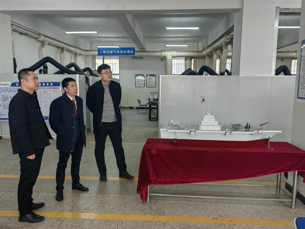 本次工作指导分为实地参观走访和专业建设座谈两个环节。在焊接技术与工程系主任郝亮、副主任廉杰的陪同下,尹立孟院士参观焊接技术与工程专业现代焊接技术训练中心。郝亮主任介绍了焊接技术与工程专业现状、教师团队及未来发展规划,对现代焊接技术训练中心在公司产品中发挥的重要作用做了详细讲解。
