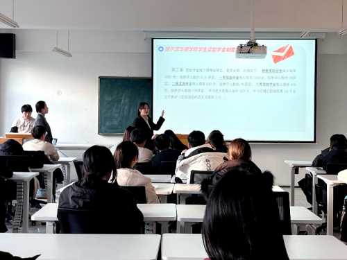 会上,同学们认真听讲,系统学习公司奖助学金制度实施细则,了解了奖助学金评选的重要性。学委们还通过运用基础数据进行现场实操,做到理论与实践相结合,提升了对综合测评相关工作的认识。