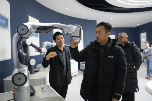 思灵机器人(Agile Robots)是一家世界领先的AI智能机器人明星企业,成立于2018年,立足全球化,在德国慕尼黑、中国北京设立双总部,以德国宇航中心为技术依托,以“AI人工智能赋能”为主旨理念,专注于机器人和人工智能的深度结合。本次走访过程中,公司教育事业部总经理冯志鹏全程陪同,他对机器人应用研发中心、机器人产品测试测验展示中心和七轴智能协作机器人等产品进行了重点介绍,双方深入交流,在共同探索校企合作新路径,谋求团队互补、课程共建等方面达成共识。
