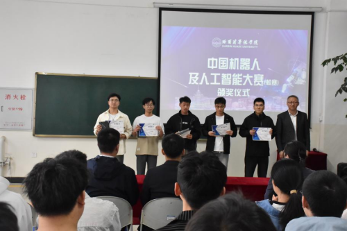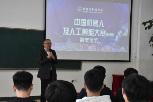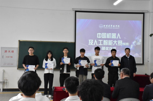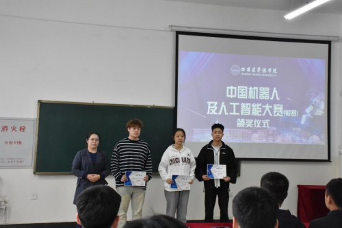 机器人工程与自动化系副主任魏颖为优秀奖获奖选手代表颁奖并与选手合影