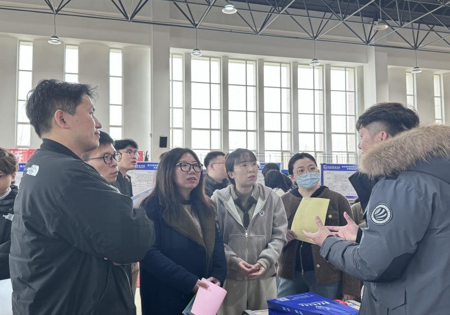 双选会现场,智能制造专业系副主任曾凡菊带领10余名专业教师组成“拓岗行动小组”,走访了包括江苏中兴派能电池有限公司、哈尔滨锅炉厂有限责任公司、零跑汽车有限公司、京东方华灿光电有限公司等在内的50余家企业。教师们不仅向企业推荐优秀毕业生,还通过与企业HR、技术负责人的深度交流,了解行业最新技术动态、岗位需求变化及人才能力要求,为后续教学改革与人才培养优化提供依据。