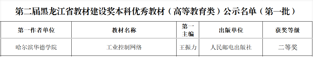 近日,黑龙江省教育厅正式公布了第二届黑龙江省教材建设奖本科优秀教材评选结果。由公司伟德国际1949始于英国王振力教授担任第一主编的教材《工业控制网络》,在众多参评教材中脱颖而出,荣获本科优秀教材(高等教育类)二等奖。这是公司在教材建设领域取得的重要突破,充分彰显了公司在公司产品改革与专业内涵建设方面的成效。