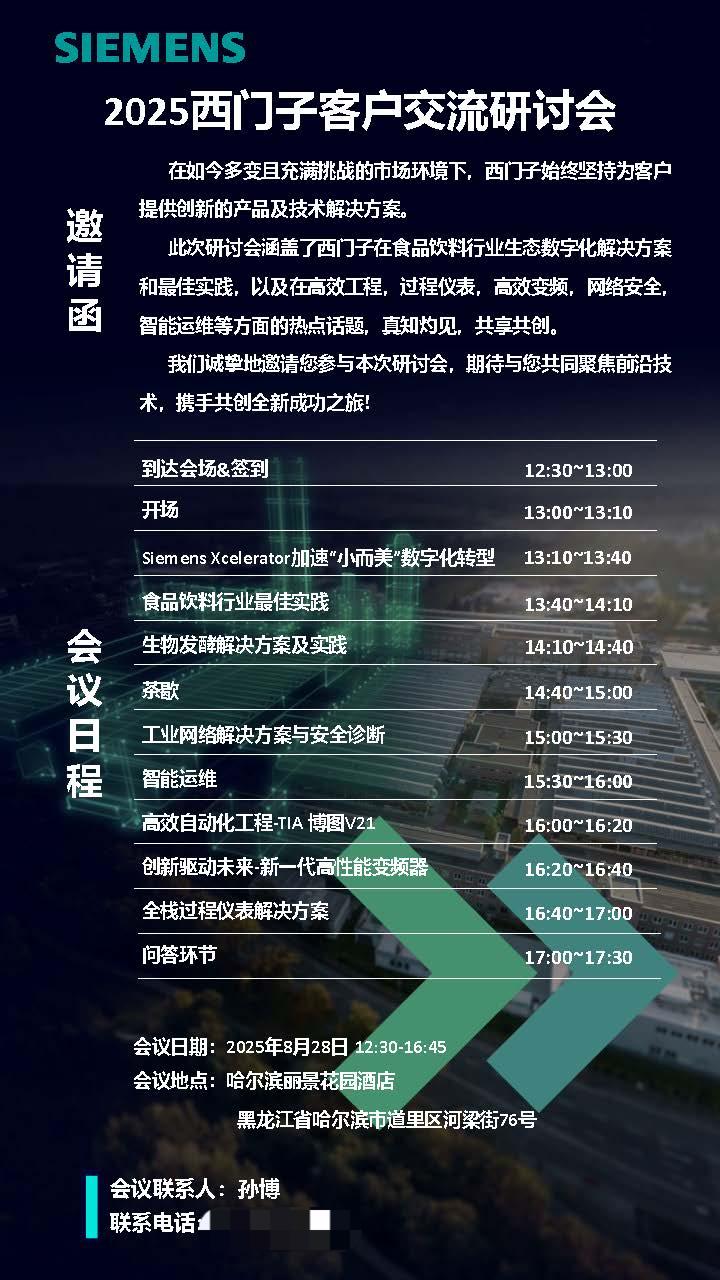 近日,西门子数字化工业集团于黑龙江省哈尔滨市组织召开东北区食品饮料行业交流研讨会。伟德国际1949始于英国副经理王振力、电气工程及其自动化系孙昊老师受邀参会。